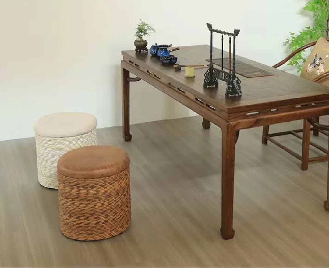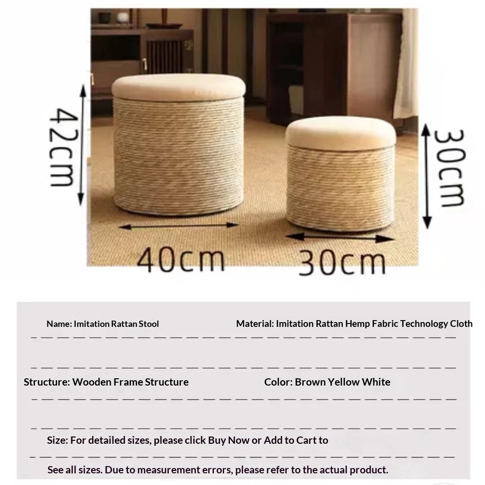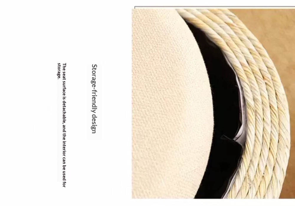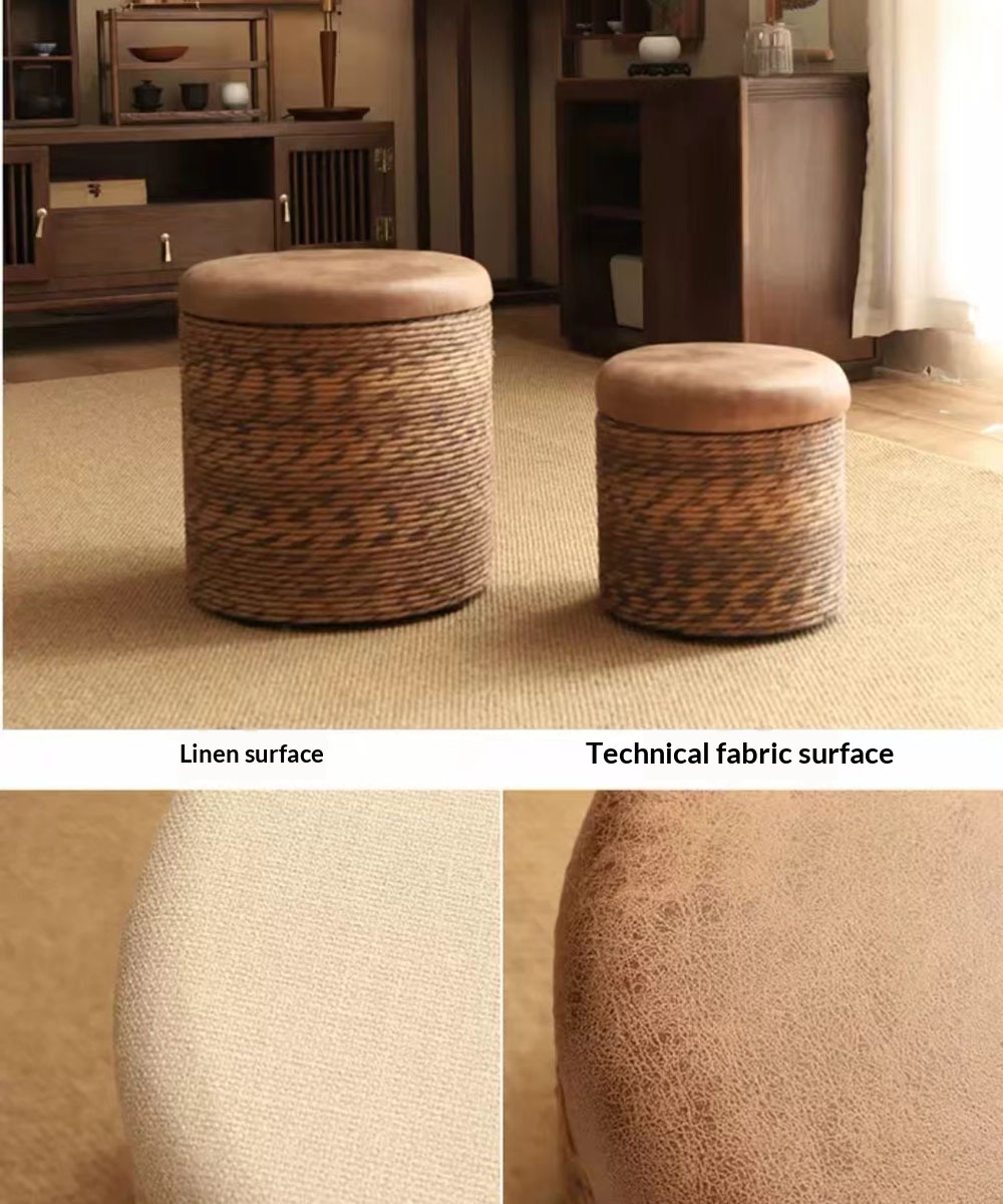 Modern Minimalist Solid Wood Footrest Storage Sofa Stool Made From Hemp Rope